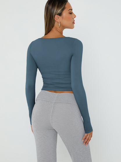 roduct Style: Daily Leisure Style Product applicable scenarios: daily wear, sports, travel, etc Product applicable season: autumn and winter Core selling point: This product contains three different colored clothes. Square neck long sleeved design, elegantly elongating the neck line. Slim fit, lightweight fit, shaping beautiful curves. Fabric: 88% polyester+12% spandex, the fabric is super soft and highly elastic, allowing for easy movement,effectively preventing it from being see-through. Matching: It can be perfectly paired with work pants, shorts, jeans, skirts, or yoga pants to meet your dressing needs for different occasions. Applicable occasions: This top is very suitable for going out, exercising, running, fitness, yoga, daily wear, streetwear, carnival parties, clubs, dates, beaches, travel, vacations, shopping, etc. Machine washable, hand wash in cold water. Do not bleach.