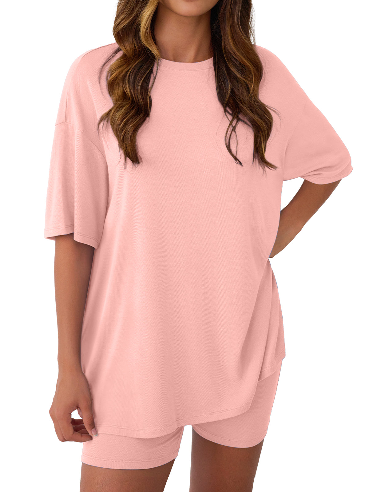 Product Style: Daily Leisure Style Product applicable scenarios: daily wear, sports, travel, etc Product applicable season: Spring and Summer Core selling point: This product is a set of short sleeved shorts. Ultra loose T-shirt with side slit design elements; The high waisted cycling shorts feature a pocket design that combines aesthetics and practicality. Fabric composition: 92% rayon and 8% spandex. The fabric is soft, elastic, and comfortable to wear,effectively preventing it from being see-through. Match: pair with sports shoes or casual shoes. Applicable occasions: Very suitable for leisure or participating in sports activities. Machine washable, hand wash in cold water. Do not bleach.