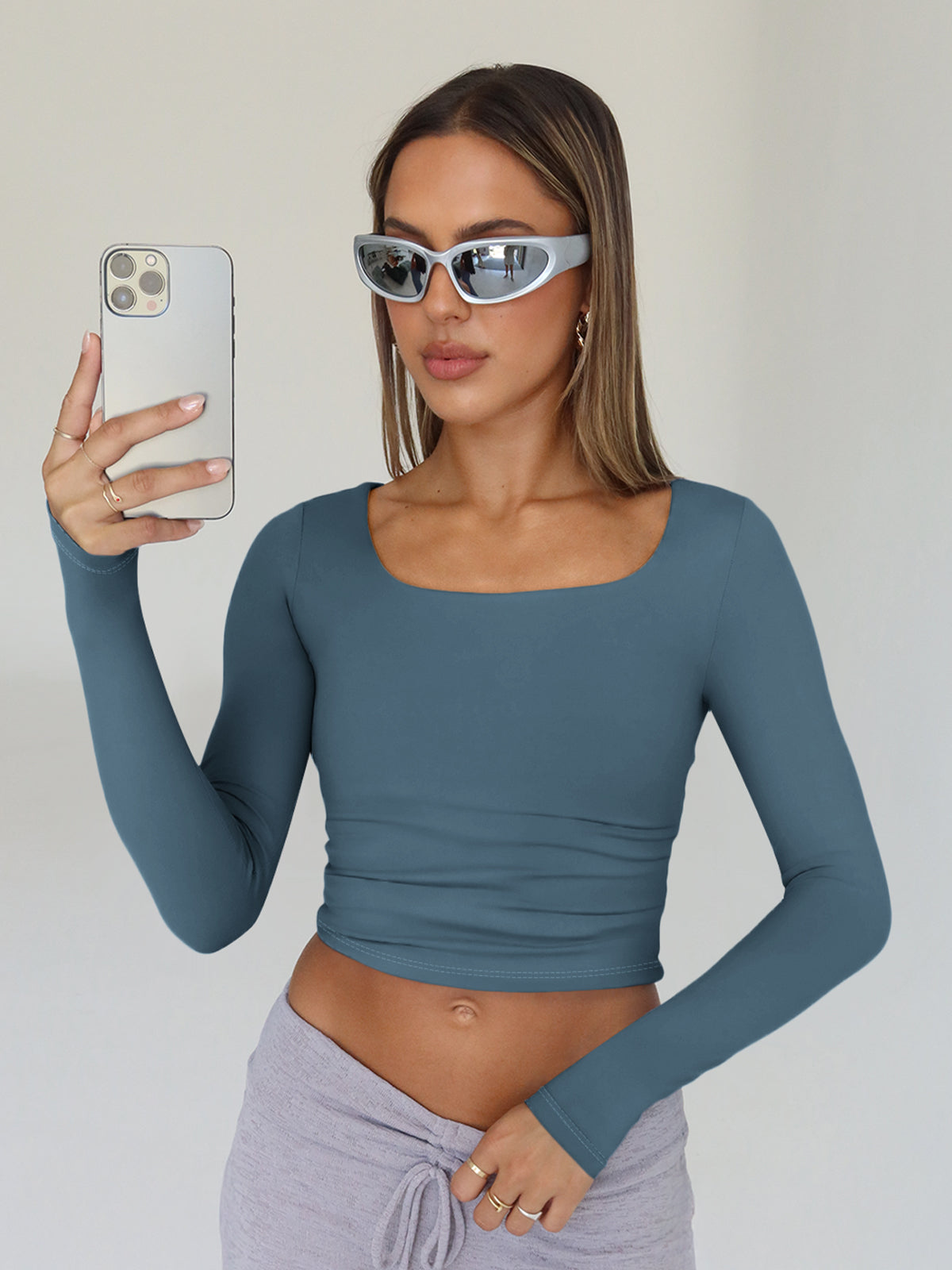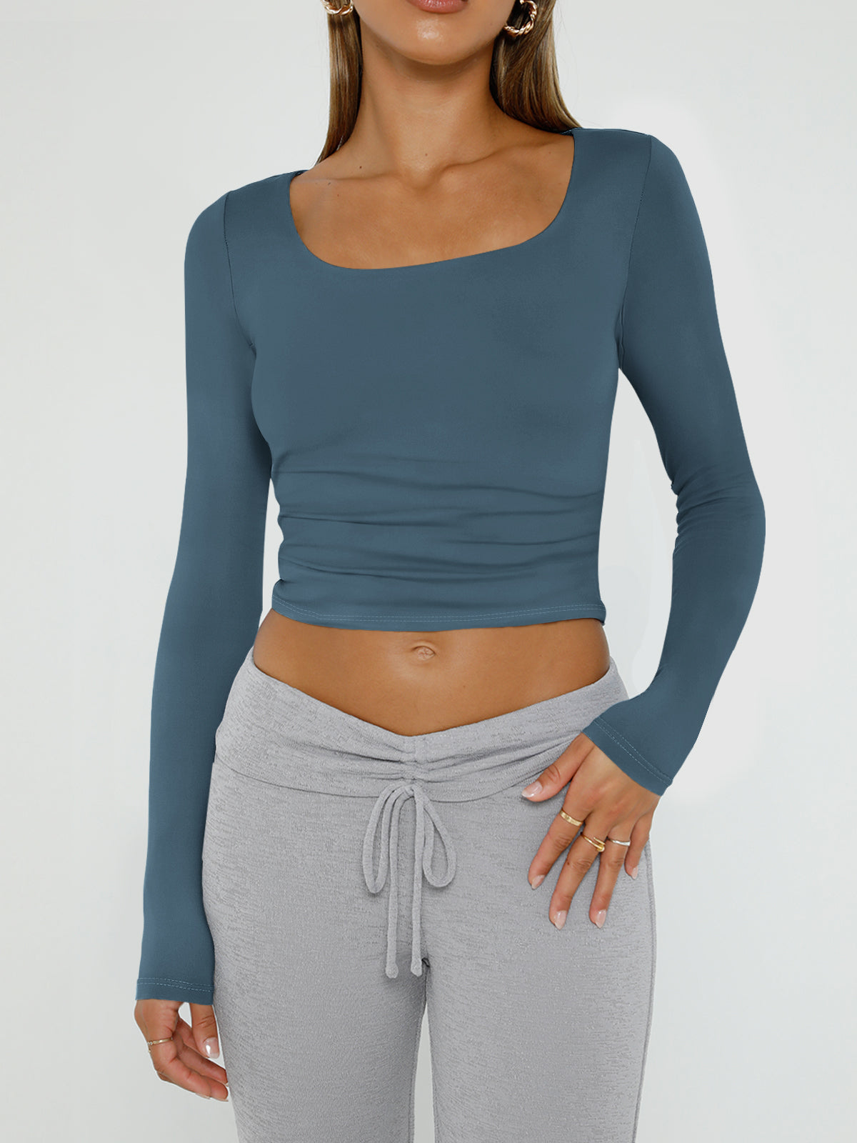 roduct Style: Daily Leisure Style Product applicable scenarios: daily wear, sports, travel, etc Product applicable season: autumn and winter Core selling point: This product contains three different colored clothes. Square neck long sleeved design, elegantly elongating the neck line. Slim fit, lightweight fit, shaping beautiful curves. Fabric: 88% polyester+12% spandex, the fabric is super soft and highly elastic, allowing for easy movement,effectively preventing it from being see-through. Matching: It can be perfectly paired with work pants, shorts, jeans, skirts, or yoga pants to meet your dressing needs for different occasions. Applicable occasions: This top is very suitable for going out, exercising, running, fitness, yoga, daily wear, streetwear, carnival parties, clubs, dates, beaches, travel, vacations, shopping, etc. Machine washable, hand wash in cold water. Do not bleach.
