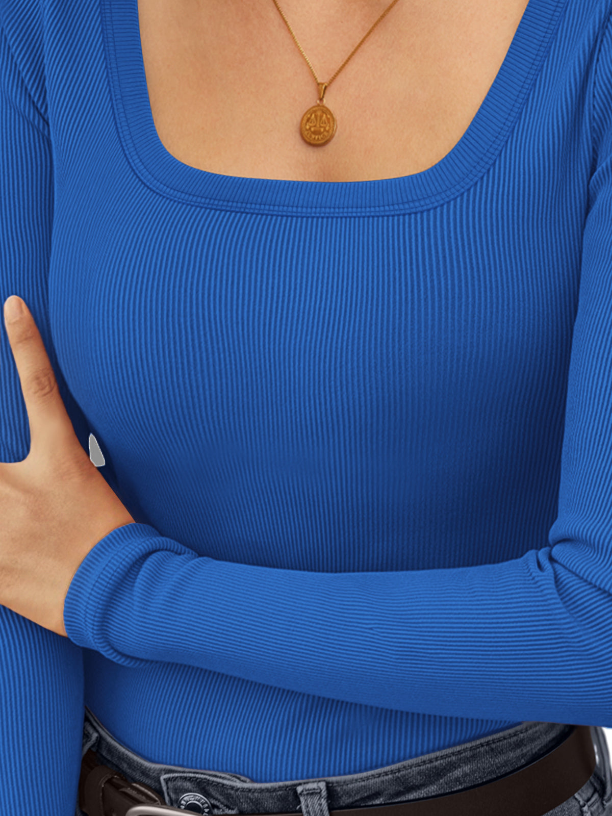 Product Style: Daily Leisure Style Product applicable scenarios: daily wear, sports, travel, etc Product applicable season: autumn and winter Core selling point: U-neck long sleeved design, elegantly elongating the neck line. Slim fit, lightweight fit, shaping beautiful curves. Fabric composition: 60%polyester+30%Rayon+10%Spandex. The ribbed fabric has a soft touch and is comfortable to wear and move around freely. The inner layer has fluff, which is very suitable for wearing in autumn and winter. Match: Pair with various bottoms, jeans, sweatpants, jackets, and sweatshirts to create a fashionable appearance. Meet your dressing needs in different occasions. Applicable occasions: This basic slim fit T-shirt is perfect for daily life in offices, schools, sports, fitness, leisure, beaches, and leisure. Machine washable, hand wash in cold water. Do not bleach.