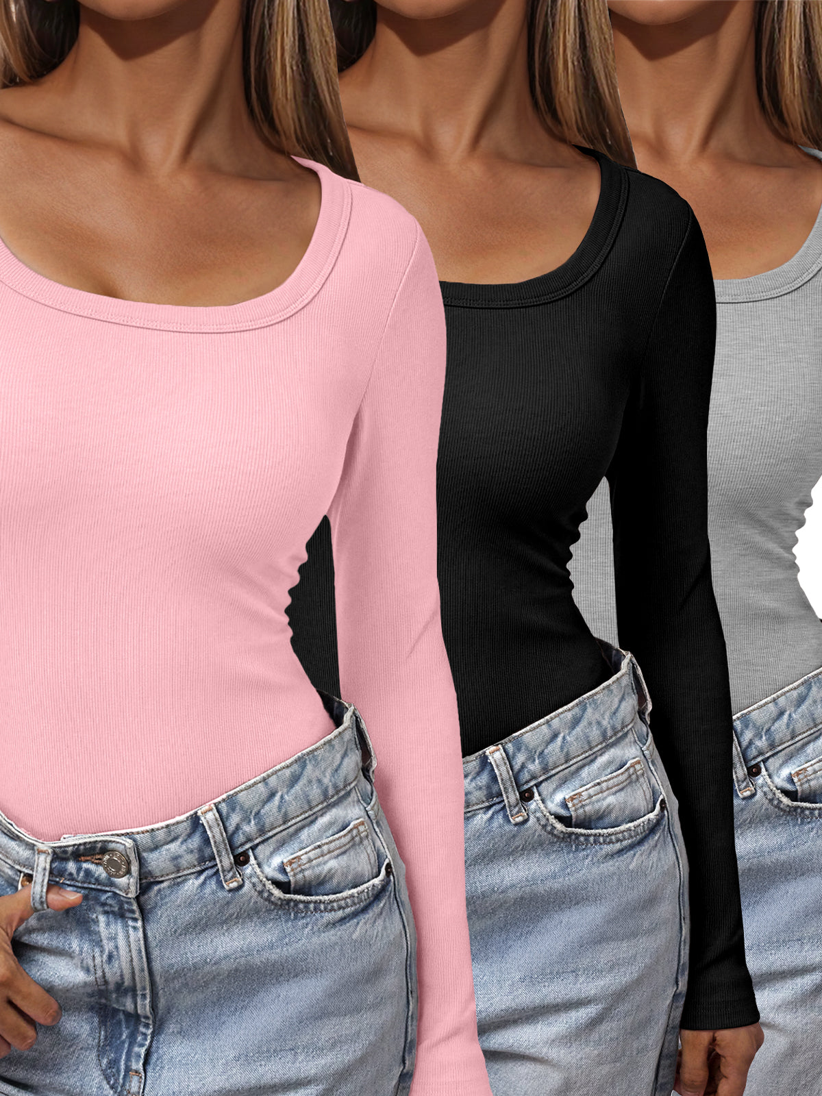 AUTOMET Women's 3-Pack U-Neck Long Sleeves