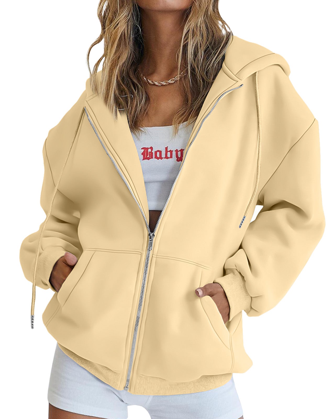 Product Style: Daily Leisure Style Sports Style Product applicable scenarios: daily wear, sports, travel, etc Product applicable season: autumn and winter Core selling point: Classic hooded zipper design, versatile and casual style; The loose fit has a good drape, making it easy to create a lazy and casual look. Fabric composition: 50% polyester+50% cotton fabric, thick and durable, skin friendly and breathable, soft and warm. Matching: It can easily be paired with various bottoms such as jeans, sports pants, skirts, etc., to meet your dressing needs in different occasions. Applicable occasions: This sports shirt is not only suitable for daily leisure travel, running, playing ball, dancing, cycling, playing ball, hiking, walking, exercising, but also easy to cope with various occasions such as work and gatherings. Whether it's shopping with friends, attending company events, or gathering with family, you can confidently showcase your charm. Machine washable, hand wash in cold water. Do not bleach.